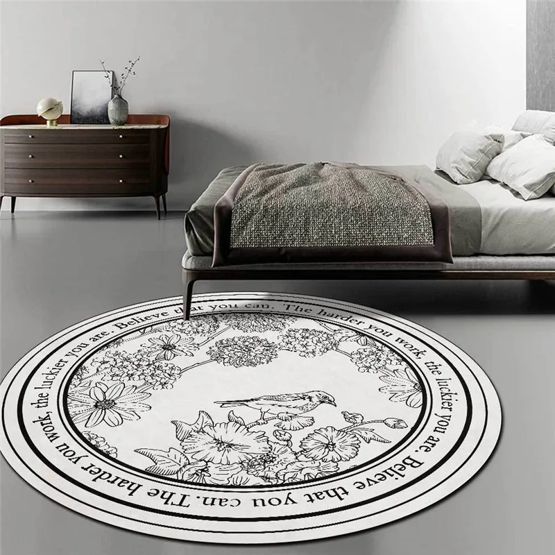 Круглые коврики с цитатами, цветочные птицы, романтический коврик с растениями, напольные коврики для гостиной, стула, нескользящий коврик, декоративный коврик для спальни