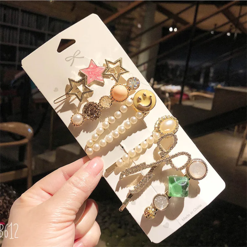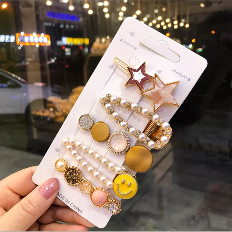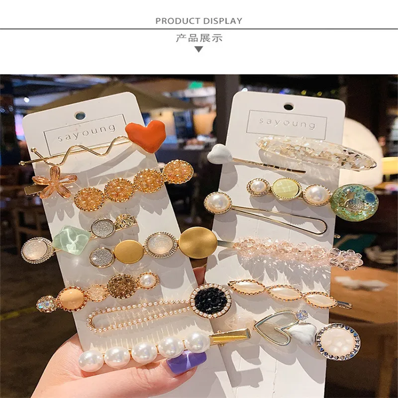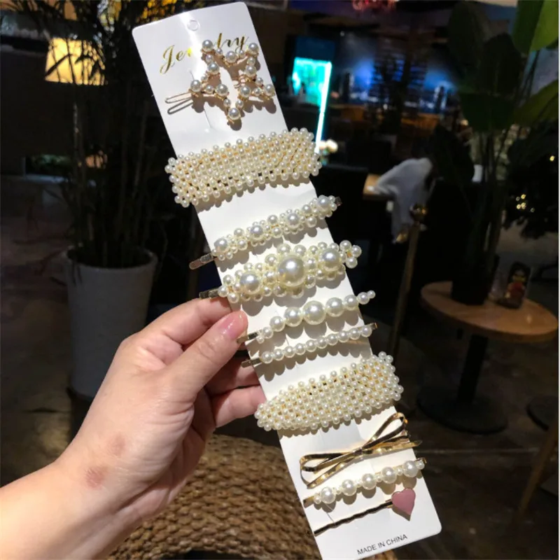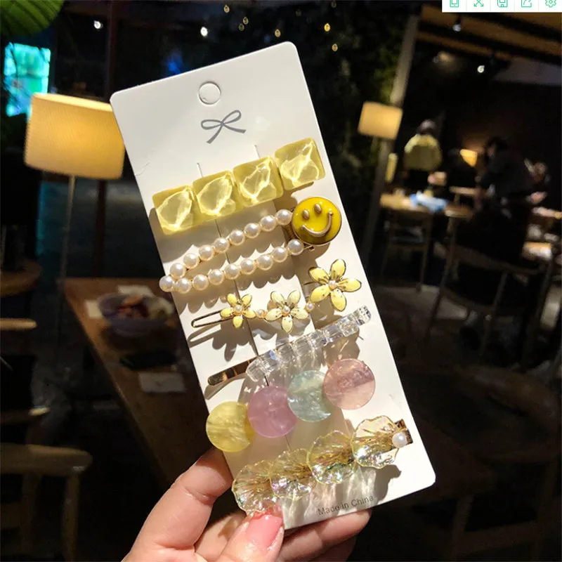 1 Набор корейских модных женских аксессуаров для волос из сплава с имитацией жемчуга акриловый металлический женский зажим для волос