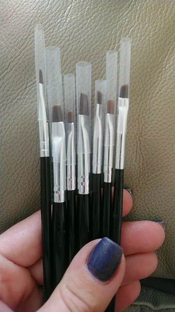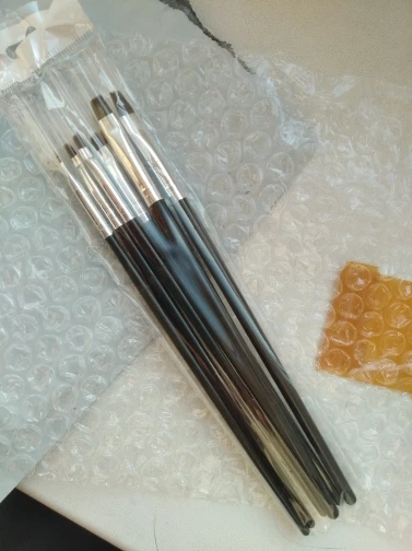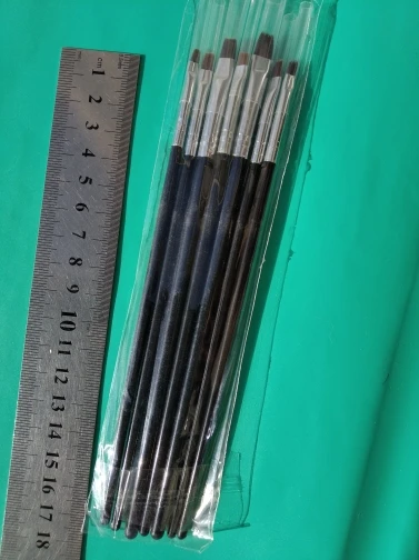 Заказал второй раз для друга, тоже художника. Как и первый раз доставка очень быстро. Пришло вместе с другими заказами на почту в одном общем пакете. Кисти мелкие, сделаны неплохо, каждая в полиэтиленовом колпачке и пропитке для сохранения формы. Я уже писал, что для акварели вероятно не вполне пригодны, так как ворс укороченный (делали для работы с ногтями), но применение в рисовании думаю найдут.