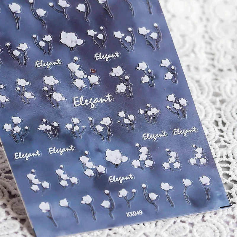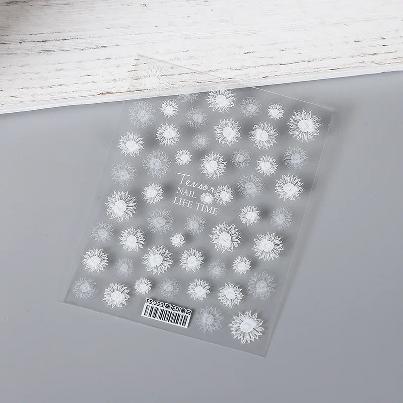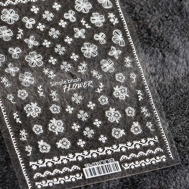 Цветочная наклейка для ногтей, черно-белые прозрачные матовые украш...