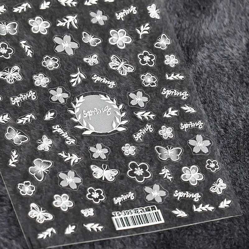 3D Black White Nail Art StickersPlant Nail Decal