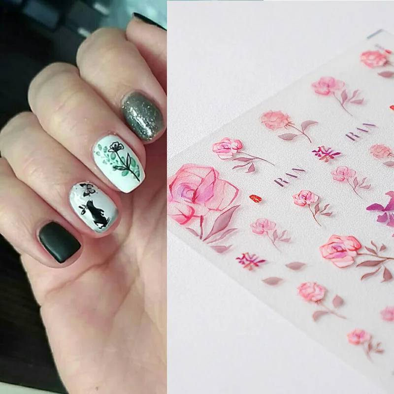 1 шт., наклейки для ногтей с цветком розы, 2021