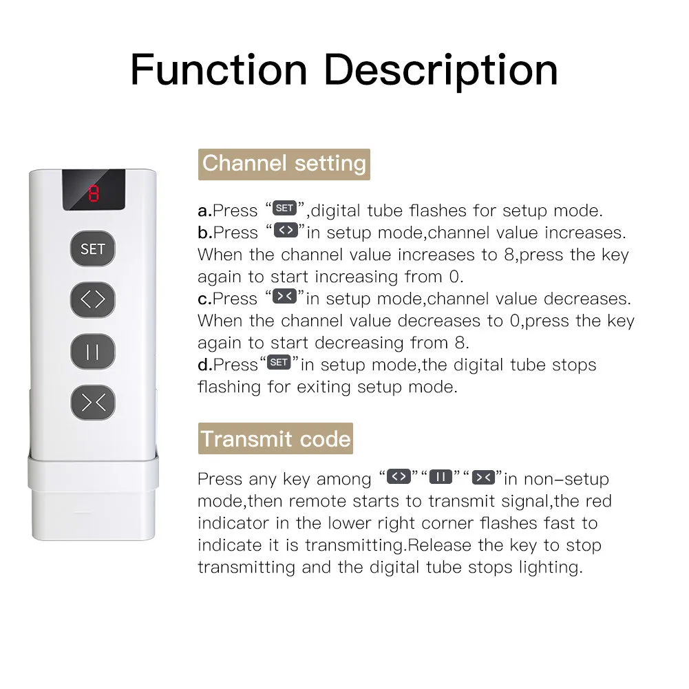 О: Этот модуль переключателя штор встроен RF433, и он может работать только с RF433 переключателем дистанционного управления с 1527 кодирования.