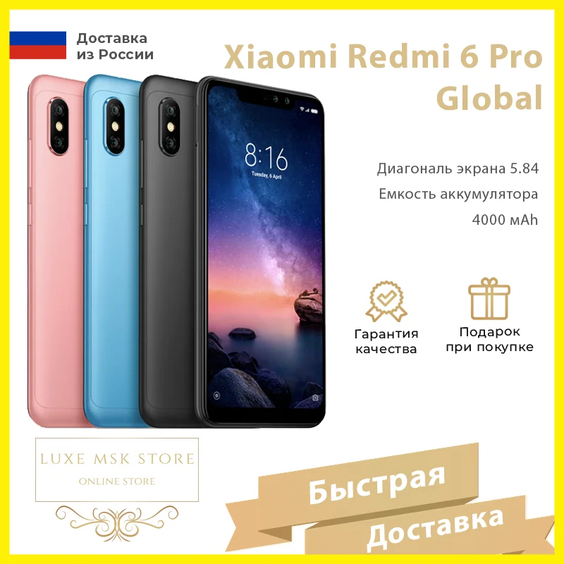 Мобильный телефон Xiaomi Redmi 6 Pro 3264GB 5.8",4000 mAh,12+5 МП,Google Play,оригинал,смартфон