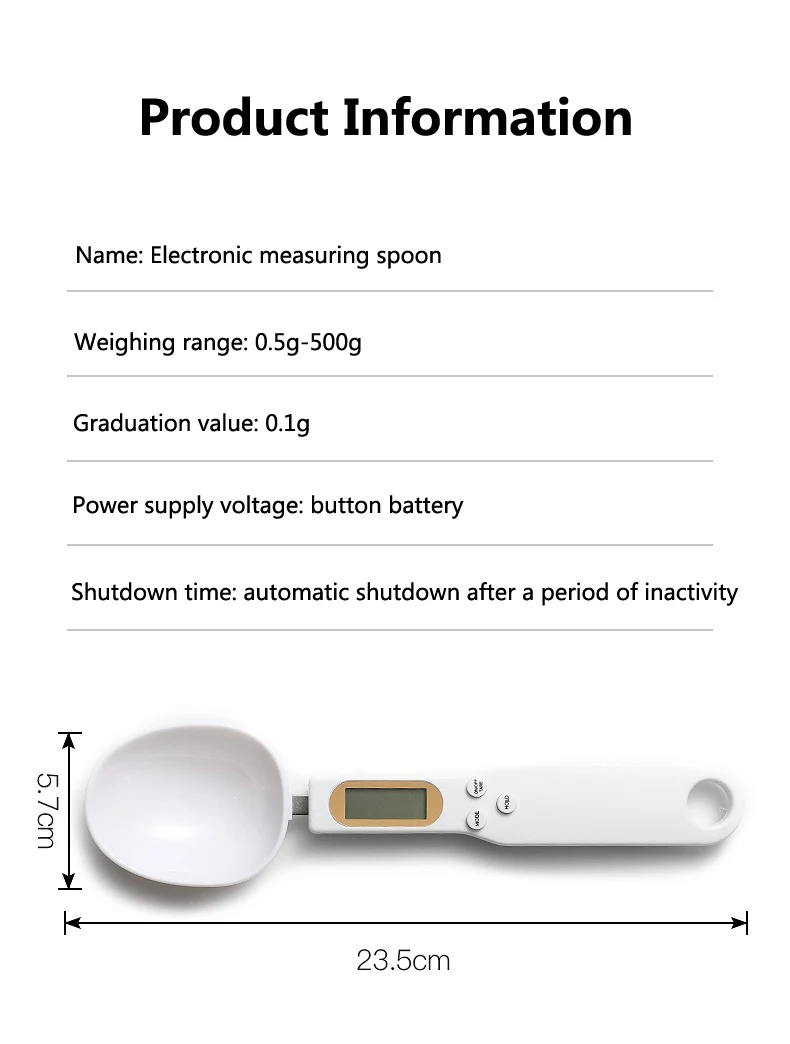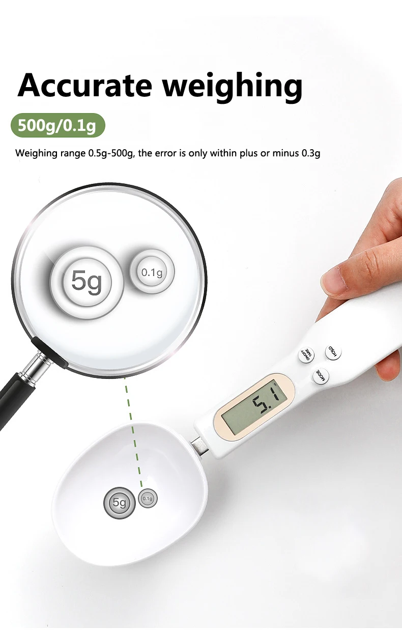 Высокоточная ложка электронные весы:Использует высокоточный датчик системы, индикация перегрузки, максимальное измерение веса до 500g, точно с шагом в 0,1 г.Точные весы могут сделать вашу еду более вкусной.