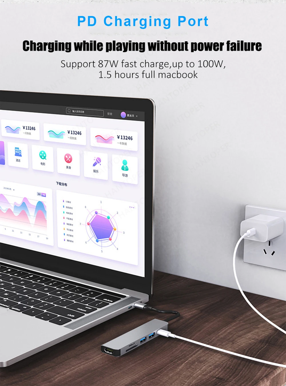Переходник-концентратор 6 в 1, USB CUSB usb-хаб, HDMI-совместимая док-станция для MacBook Pro, Nintendo Switch, Разветвитель USB-C 3,0