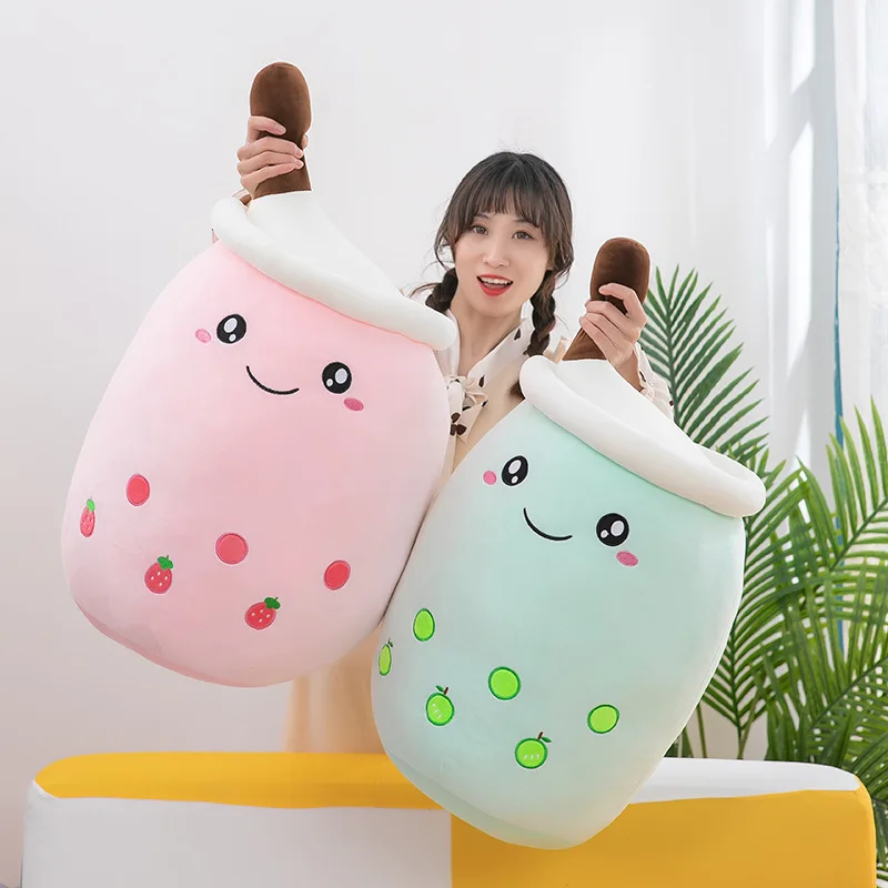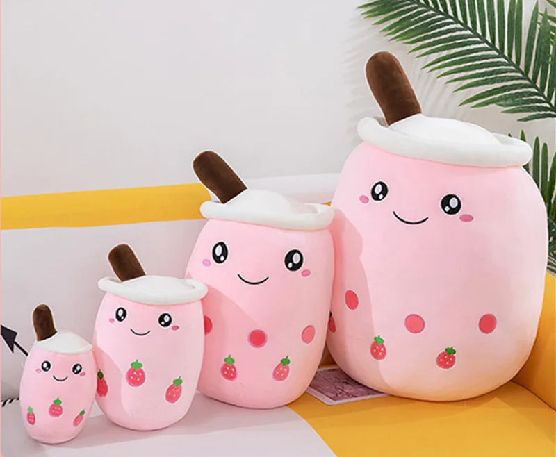 Милая плюшевая набивная мягкая розовая клубника, молочный чай, плюшевая игрушка Boba, чайная чашка, пузырьковая чайная подушка, подушка, подарок для детей