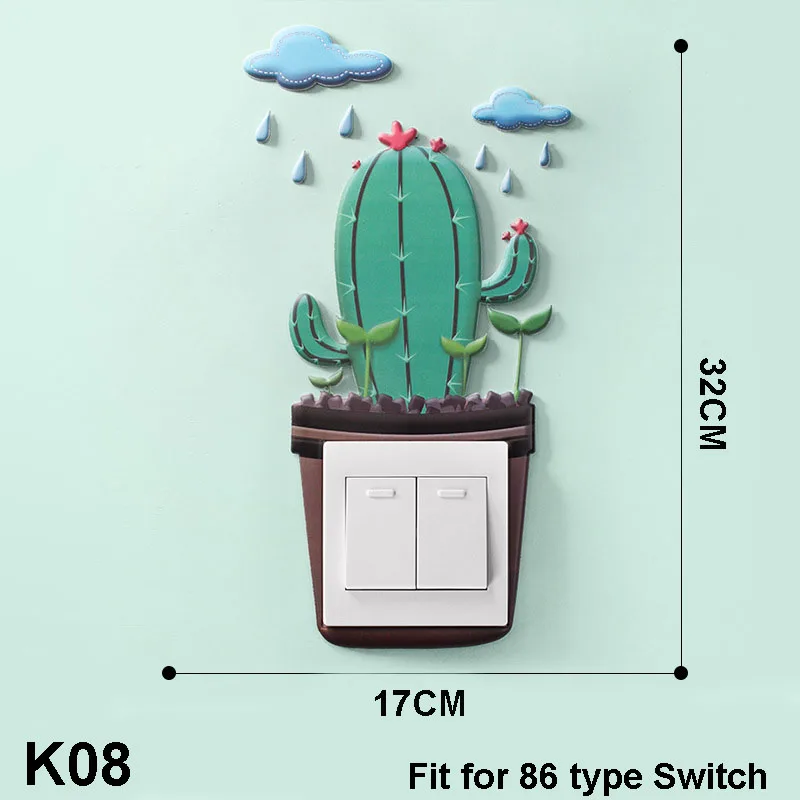 Милый 3D переключатель настенные светящиеся наклейки Единорог паста самоклеющиеся домашние Декоративные животные кактус детская комната Plug Stick Декор