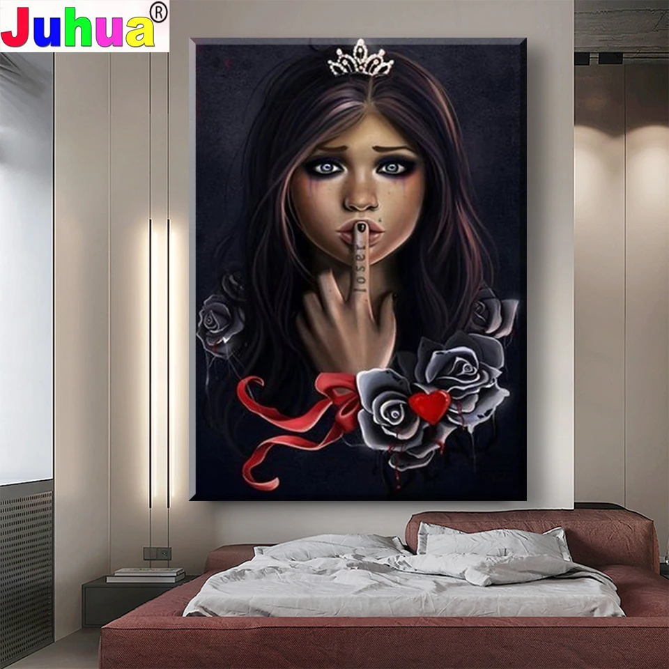 Алмазная 5D картина Череп девочка, картина сделай сам, полная вышивка, Готическая роза, подарок для домашнего искусства,