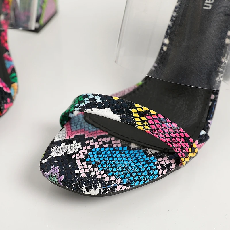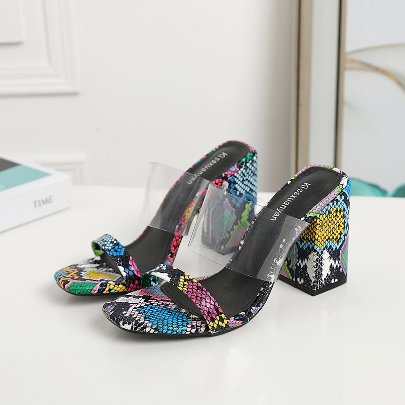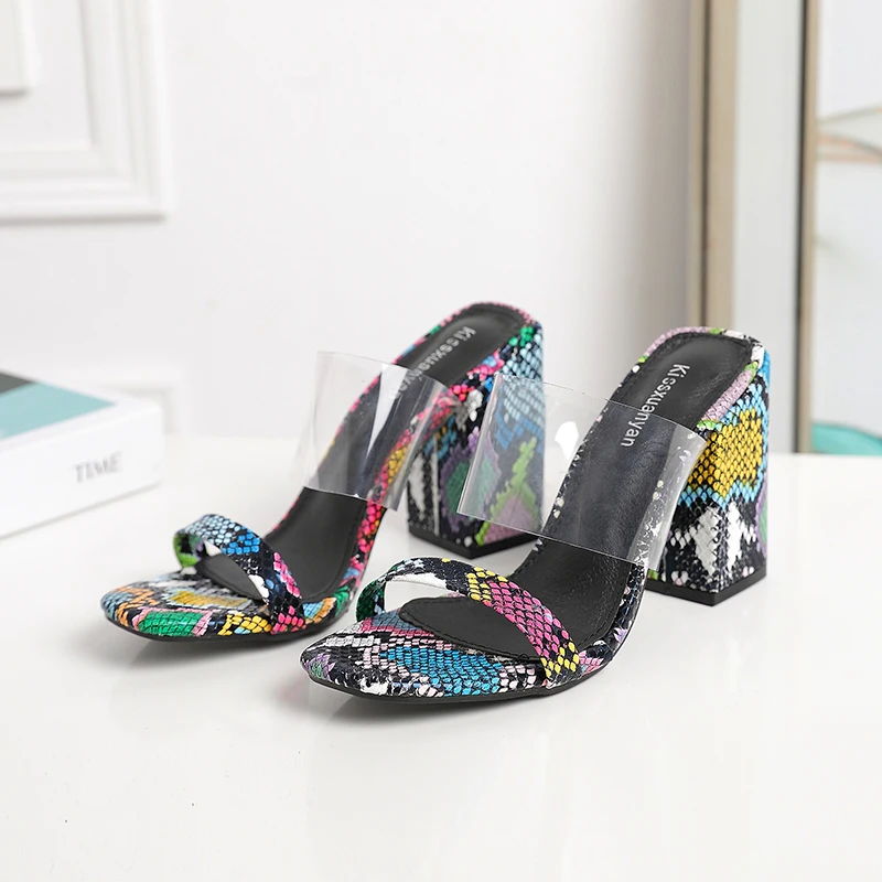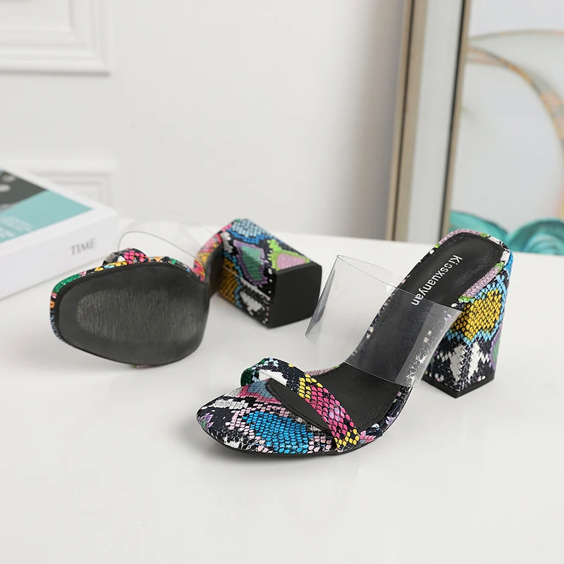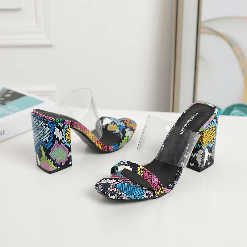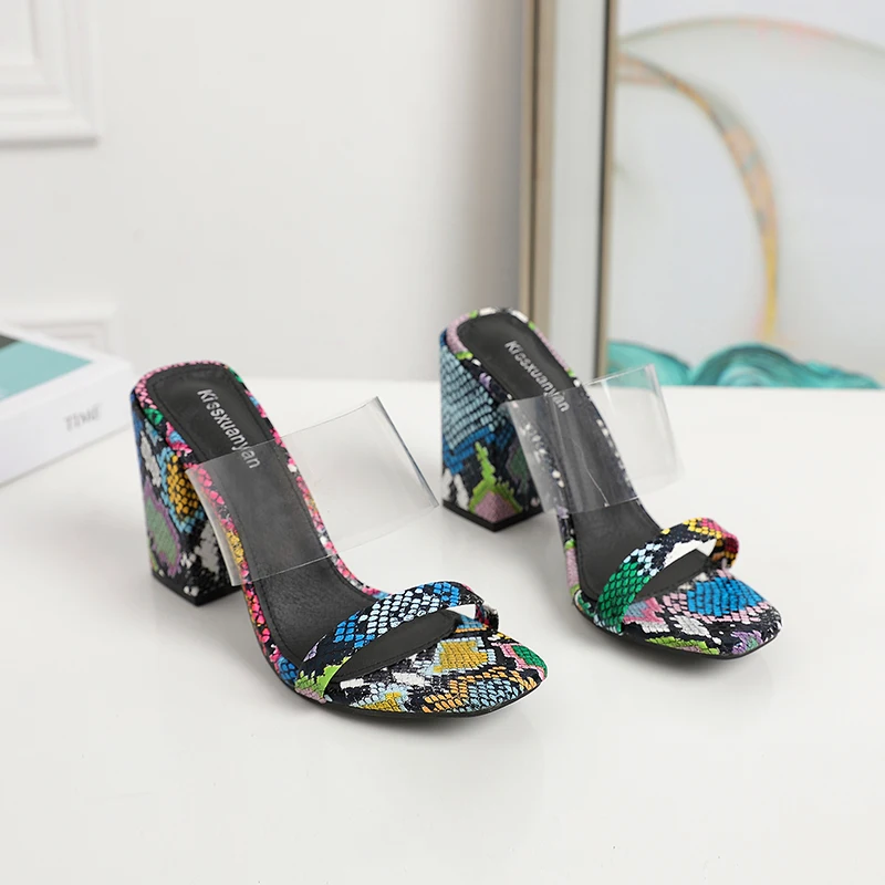 Туфли женские прозрачные со змеиным принтом, ПВХ сандалии, высокий каблук, роскошные модные тапочки, лето 2022