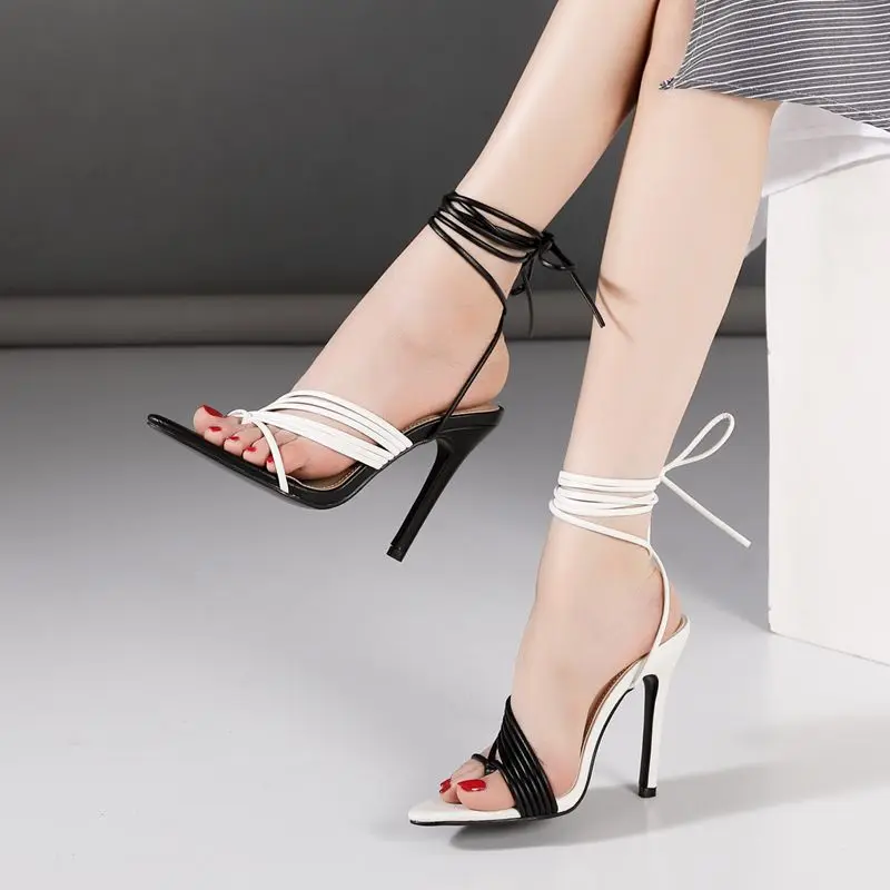 Сандалии женские на высоком каблуке 11 см, с острым носком