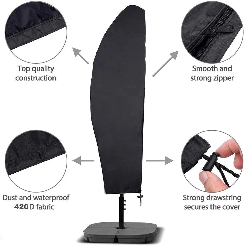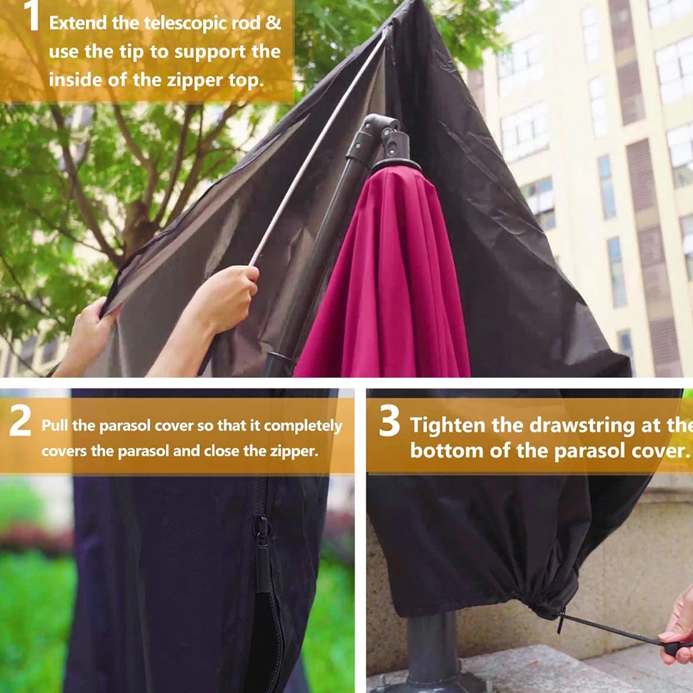 1. Пожалуйста, проверьте размер вашего наружного зонта патио перед покупкой. Пожалуйста, посмотрите фактическую форму крышки на предоставленной фотографии и проверьте размеры вашего зонта для правильной посадки.