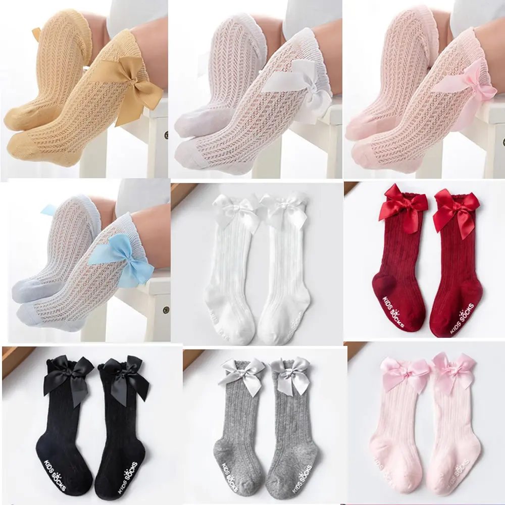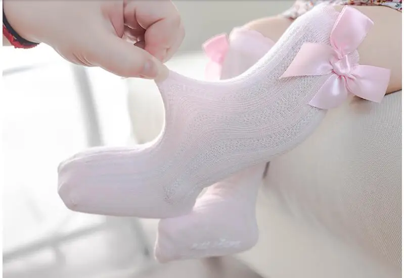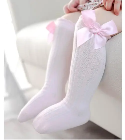 Детские гольфы новые Нескользящие мягкие хлопковые кружевные детские носки до колена с большим бантом для маленьких девочек хлопковые носки с бантом
