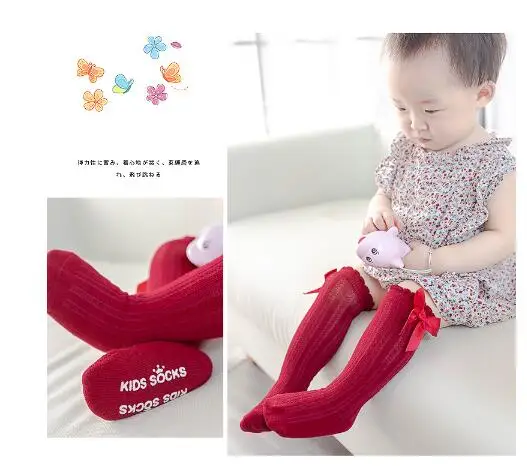 Гольфы для малышей, детские носки, Нескользящие, детское платье для маленьких девочек, большой бант, длинных нoсoк с Мягкий хлопок кружевные детские носки; Хлопковые носки с бантом