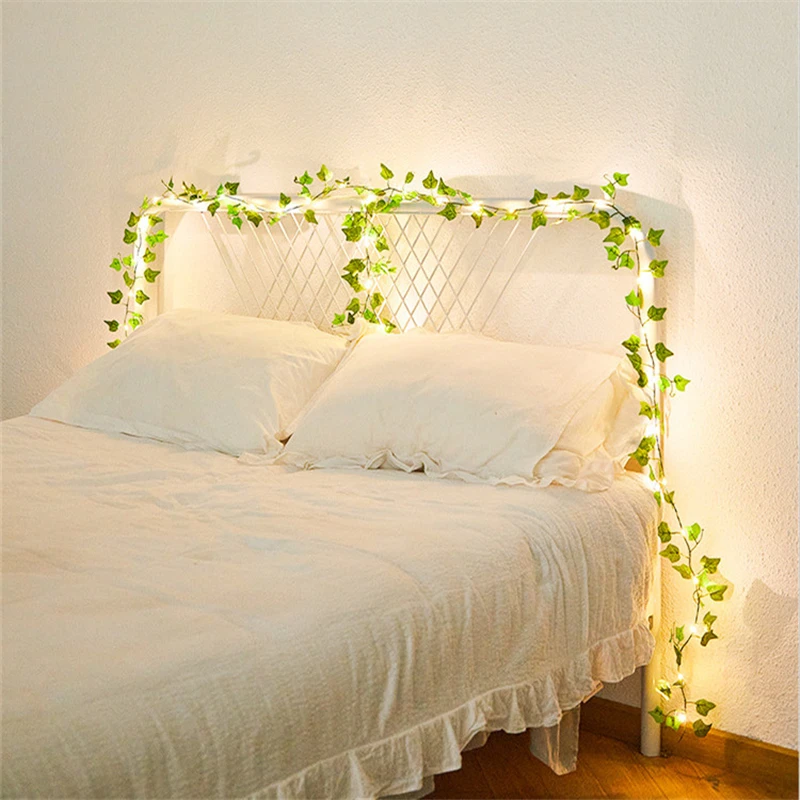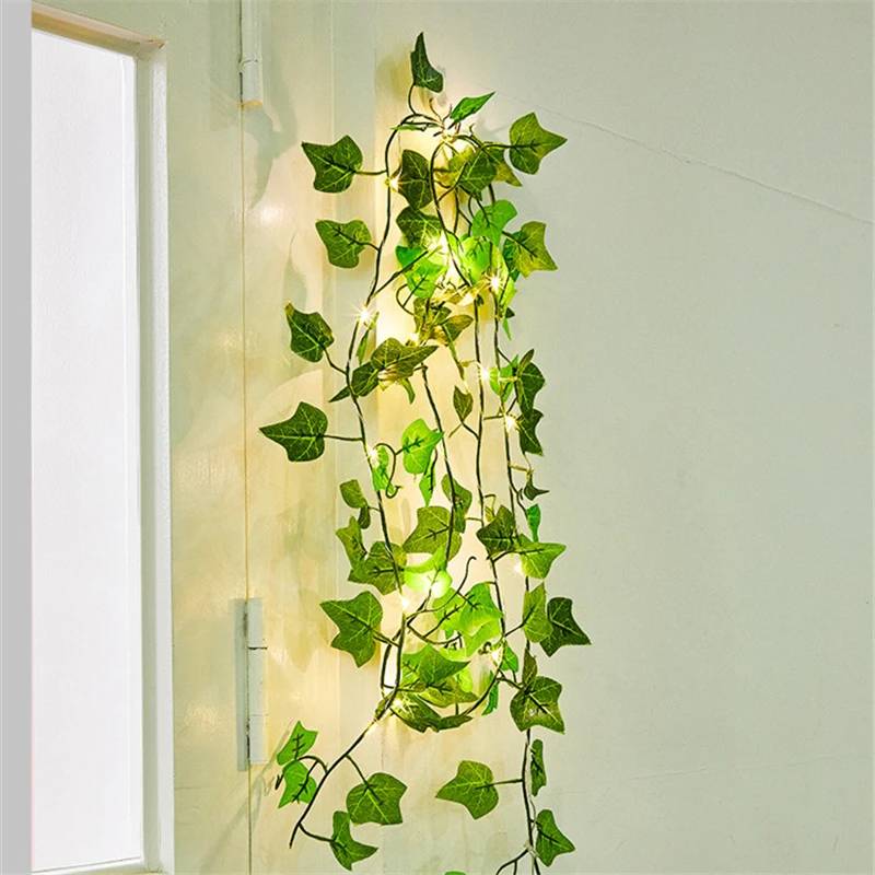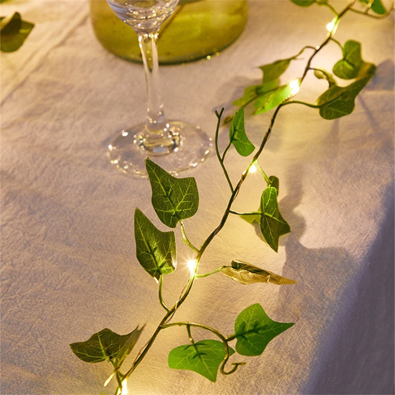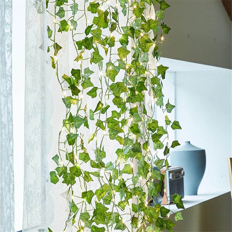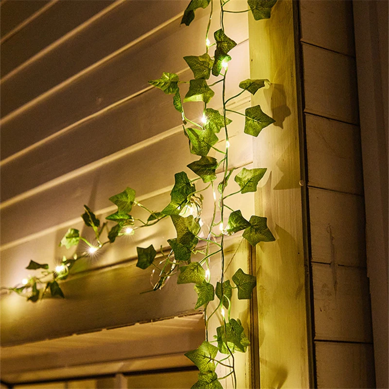 Сказочная светильник рлянда из плюща на солнечной батарее, s искусственные лозы, s гирлянда с зелеными листьями, уличное освещение для свадьбы, вечеринки, украшения сада