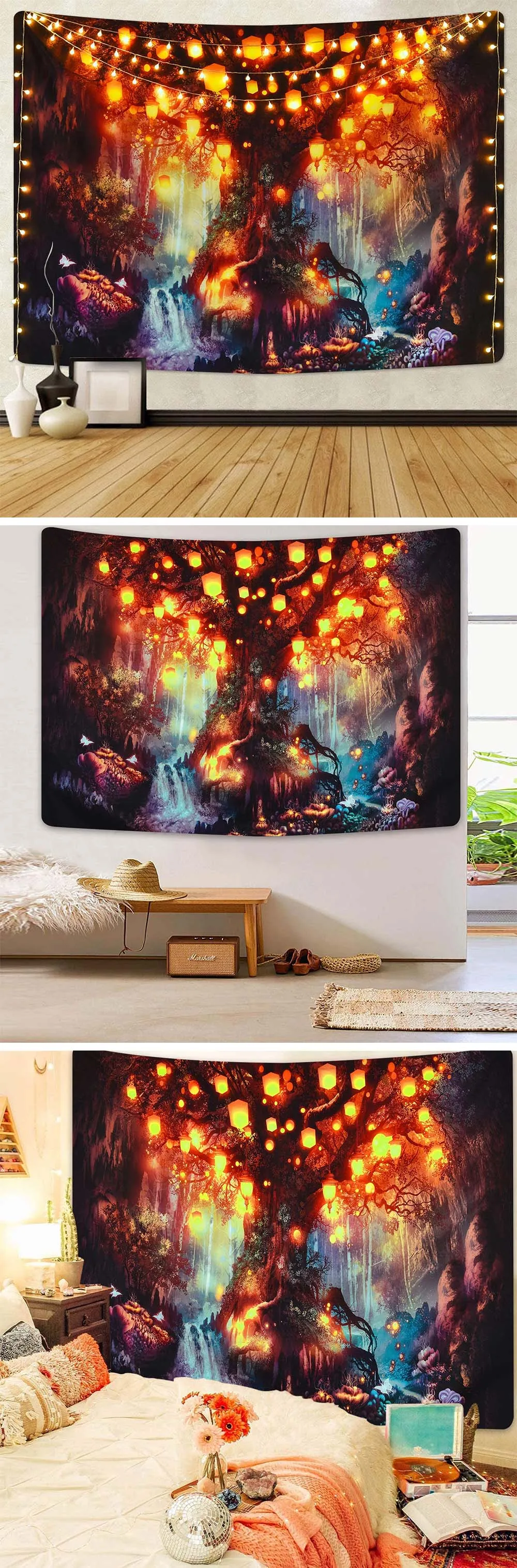SepYue 4 стиль ЛЕС ковер Замок сказка психоделические красочными бабочками и бантиками; Настенный Гобелен для дома и общежития фантазия 95x73cm