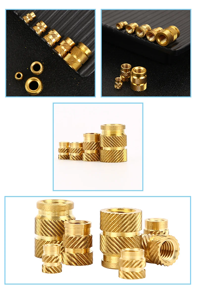Латунные встраиваемые гайки горячего расплава, нагревательное литье, медная резьба гайка с кольцевой вставкой SL-Type двойная саржа, Латунная гайка с накаткой, M2M3, 100 шт.