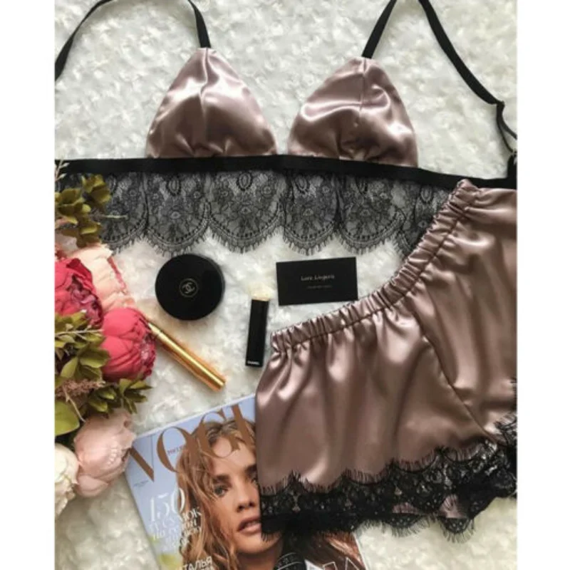 Женское нижнее белье, сексуальный шелковый топ, нижнее белье, пижамы, топ на шнуровке, бюстгальтер и шорты, комплект экзотической одежды, комплект сексуального нижнего белья, пижамы
