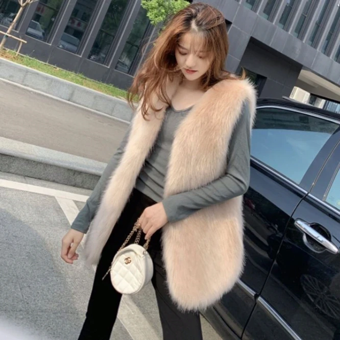 Осень-зима 2021 Новинка жилет из искусственного лисьего меха женское среднее длинное пальто жилет из искусственного меха плечевой серый