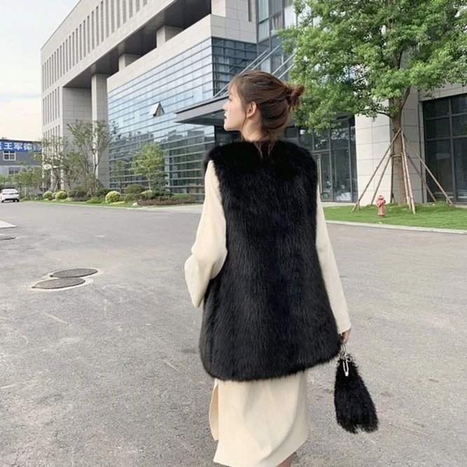 Осенне-зимний новый меховой жилет женский меховой жилет средней дли...