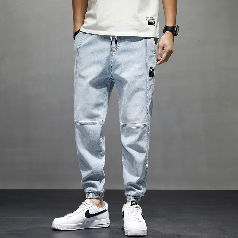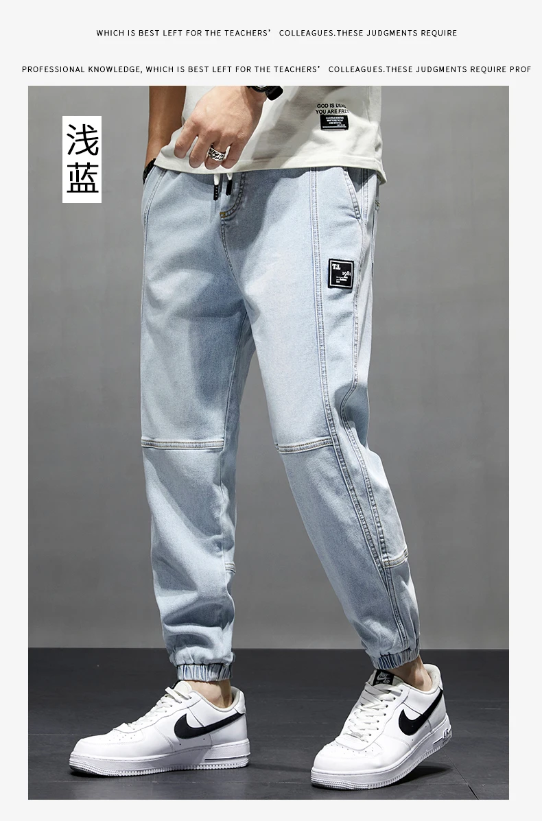 Мужские свободные джинсовые брюки, уличные брюки, подходящие ко всему корейские мужские летние шаровары большого размера, мужские модные синие джинсы с карманами, 2021