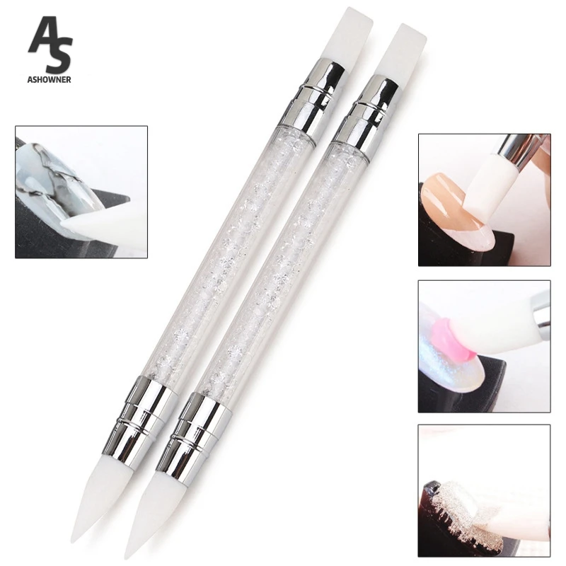 1 шт., двухсторонний дизайн ногтей, силиконовая скульптура, ручка для ногтей, инструменты для художественной резьбы, DIY живопись, блестящие стразы, акриловый маникюр