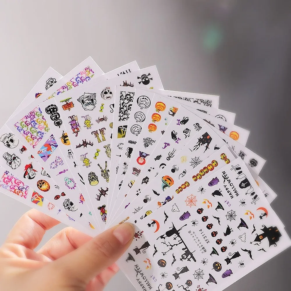 12 шт.компл., наклейки для дизайна ногтей в стиле Хэллоуин, смешанн...