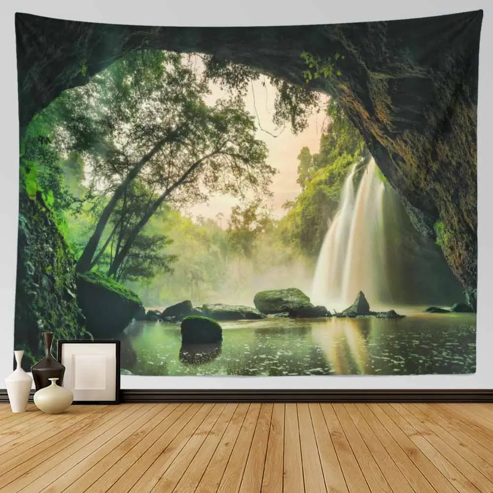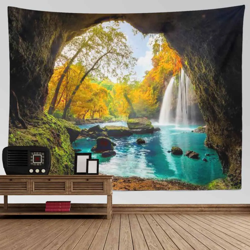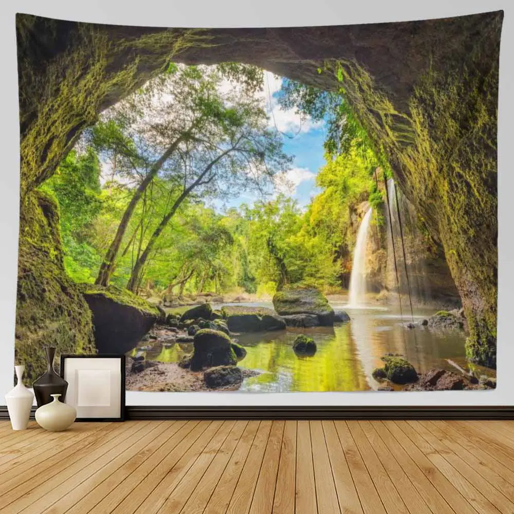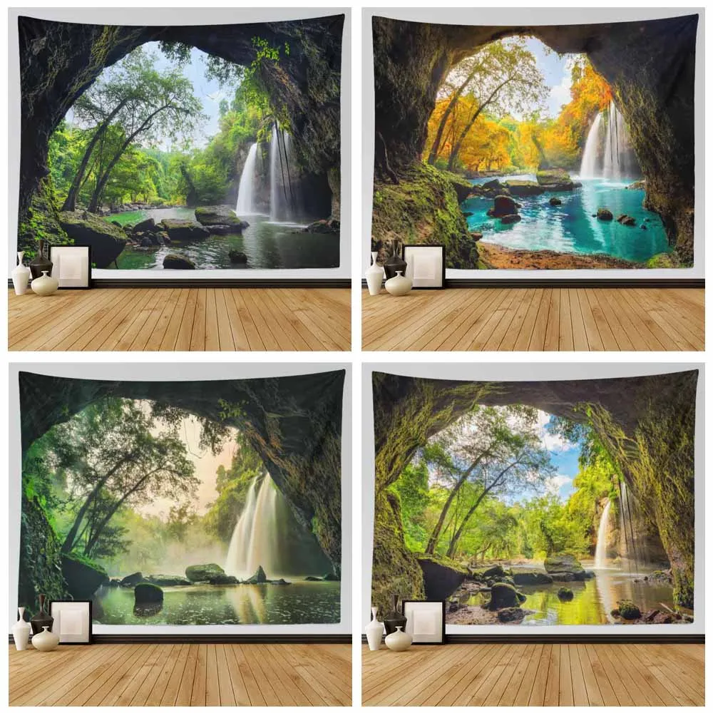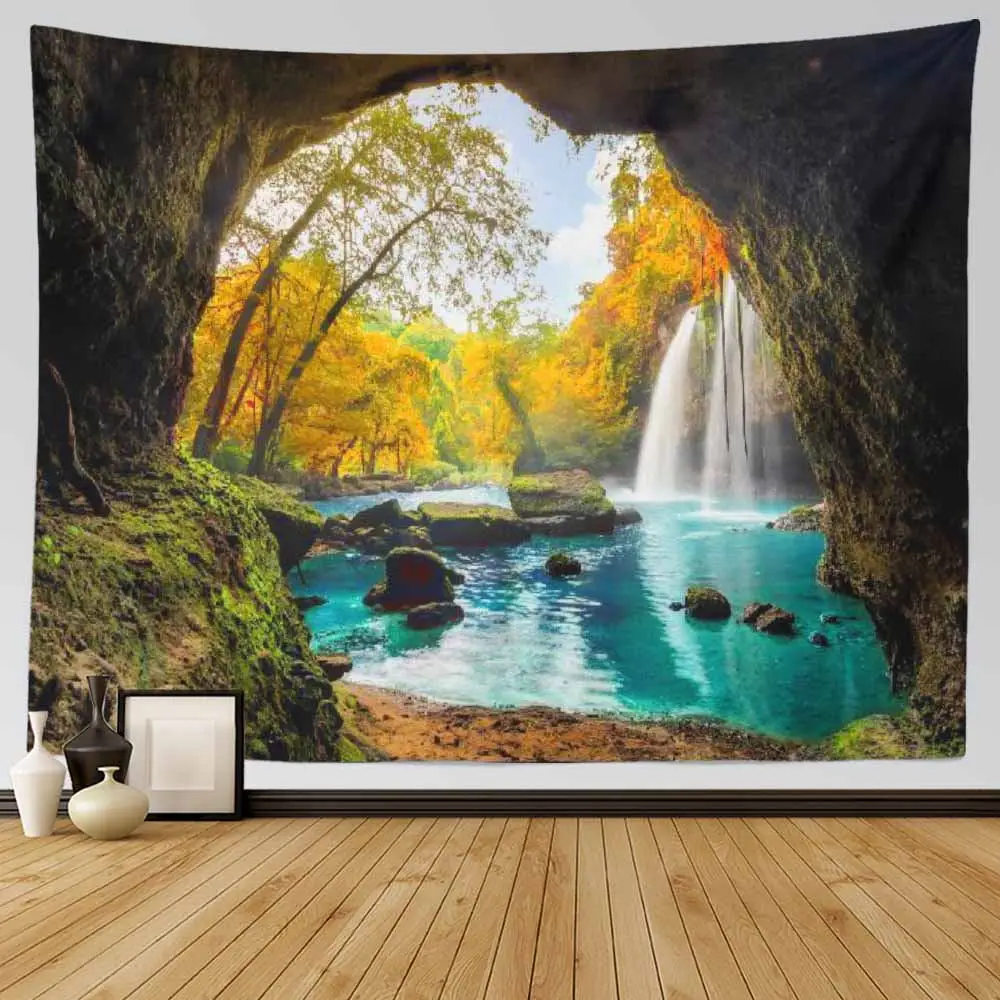 Красивая пещера SepYue с принтом водопада, настенный гобелен в стиле хиппи, Полиэстеровая ткань, домашний декор, настенный подвесной коврик, ковры, водопад