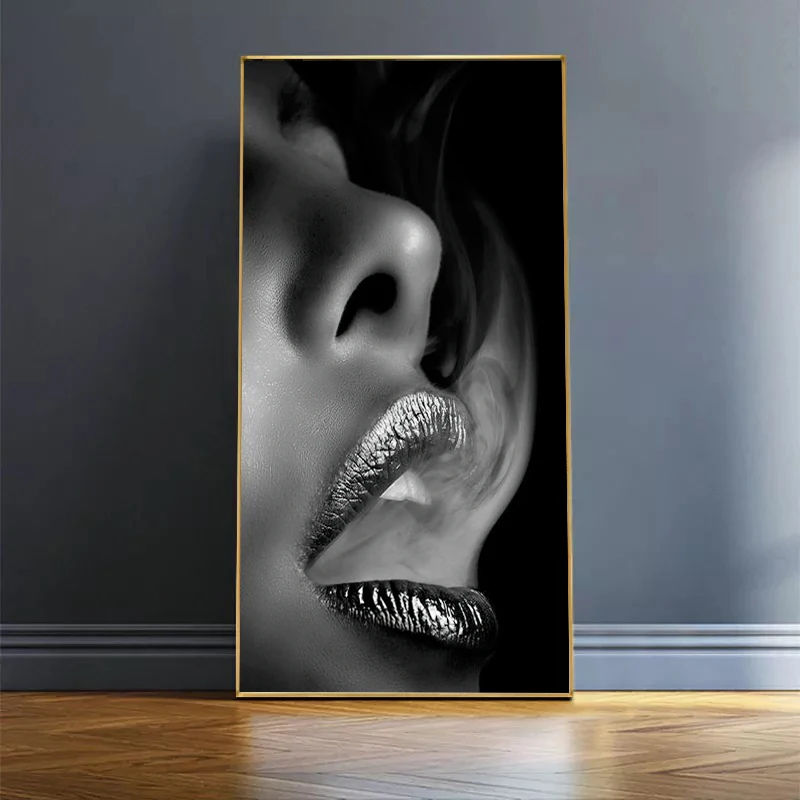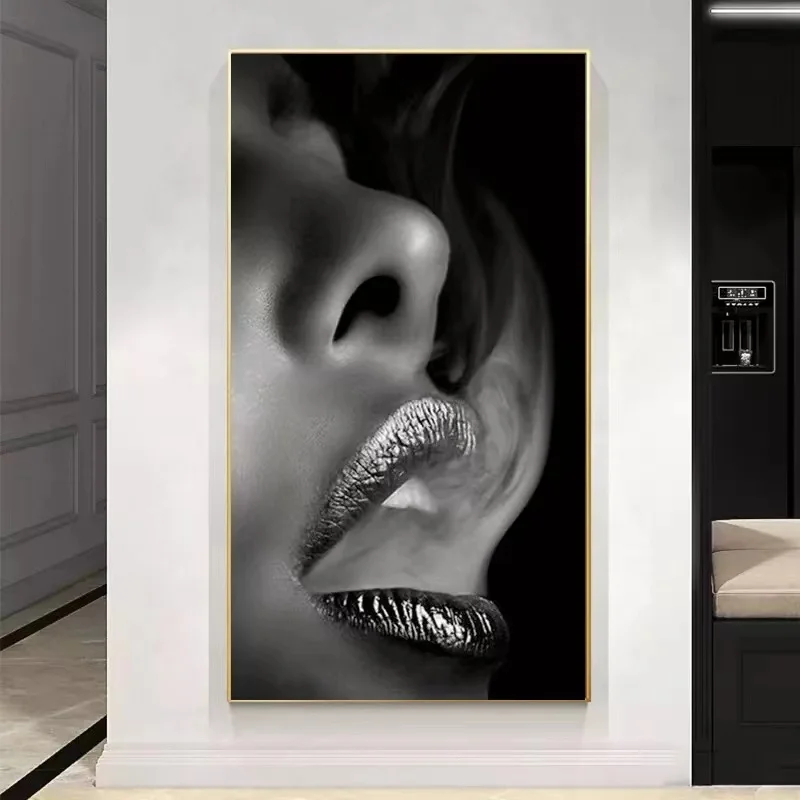 Серебристые и красные женские плакаты с губами и принты для гостиной, украшение для дома, холщовая стена для гостиной, художественная роспись