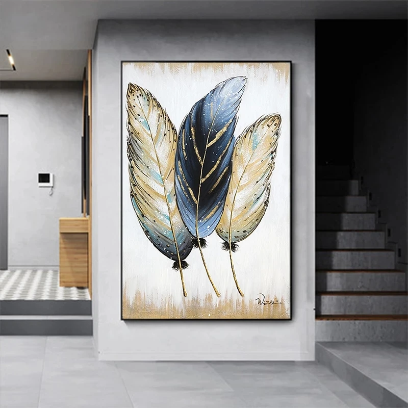Номер моделиAbstract Gold Blue Feather posters Canvas Painting