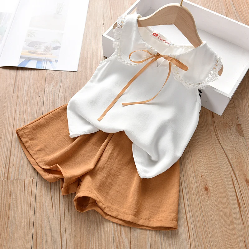 Летние футболки для девочек с Комплекты одежды, милая клетчатая рубашка кружевная рубашка без рукавов + шорты, 2 предмета в комплекте, для детей ясельного возраста детская верхняя одежда, детская одежда, на возраст 2, 3, От 5 до 7 лет