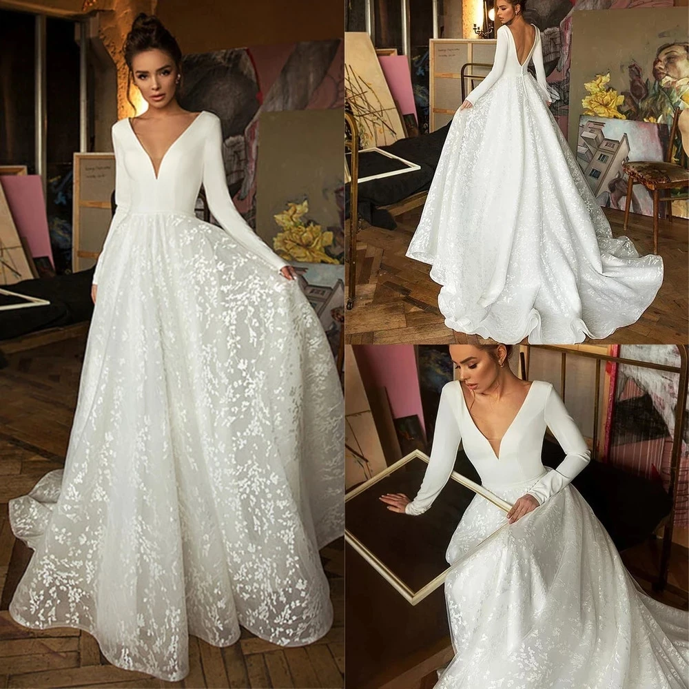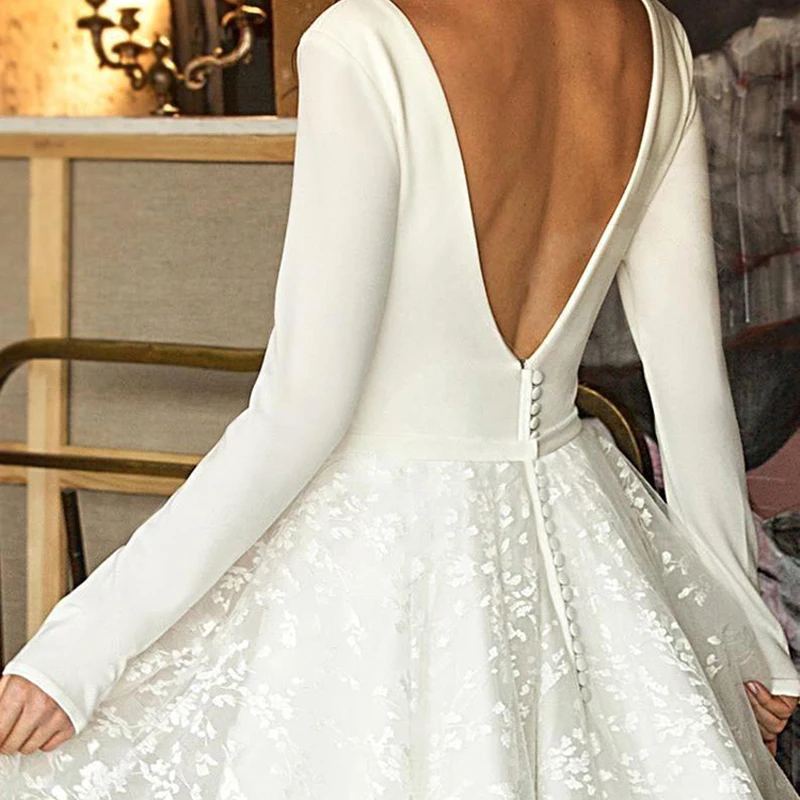 2021 свадебное платье Boho De Mariee, атласное длинное платье с длинными рукавами, простое платье невесты, Vestido De Novia HQX3430