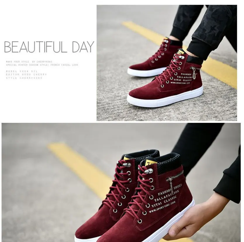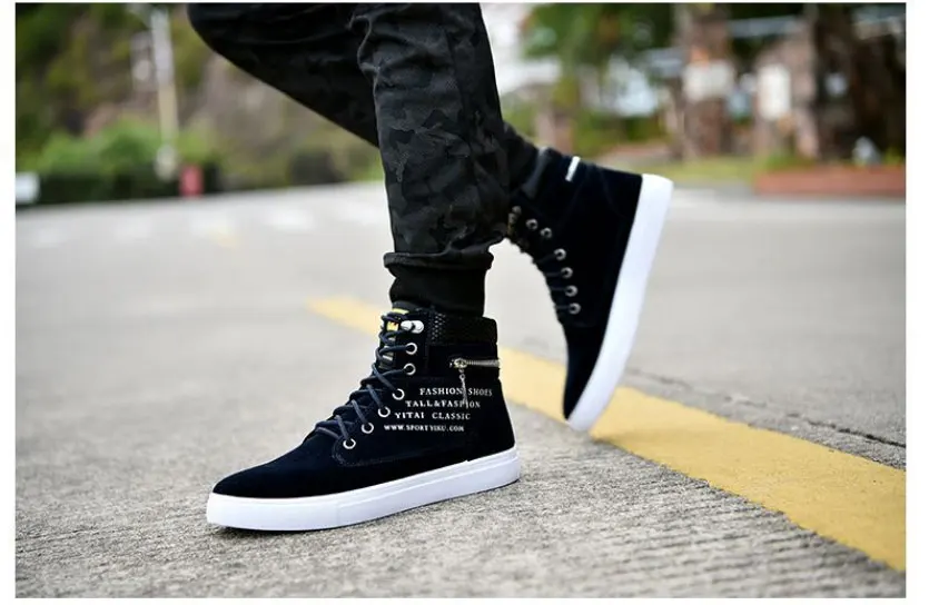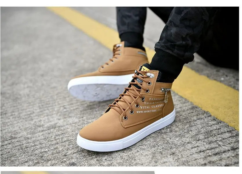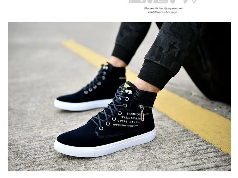 Осенне-зимняя мужская обувь с высоким берцем, Корейская повседневная обувь парусиновая обувь для учащихся, трендовые ботинки большого размера