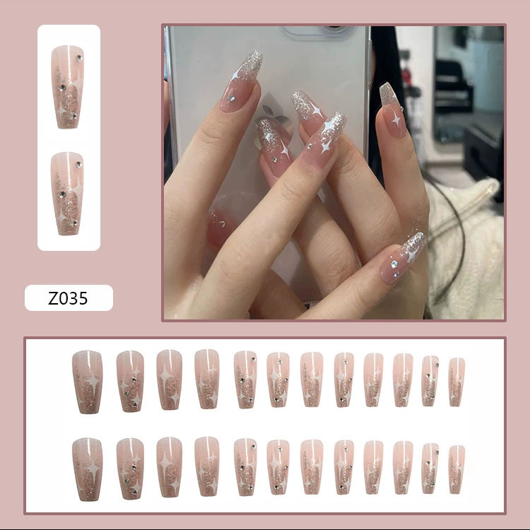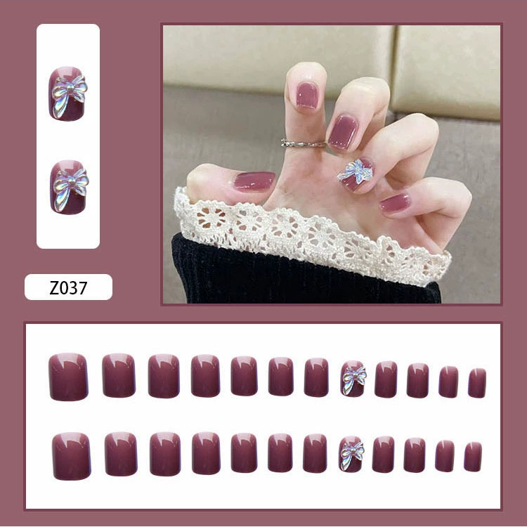 24 шт.кор. носимый однотонный многоразовый съемный дизайнерский набор с полным покрытием Бабочка Бриллиантовая Накладка для ногтей поцелуй дисплей прозрачная пенистая палочка
