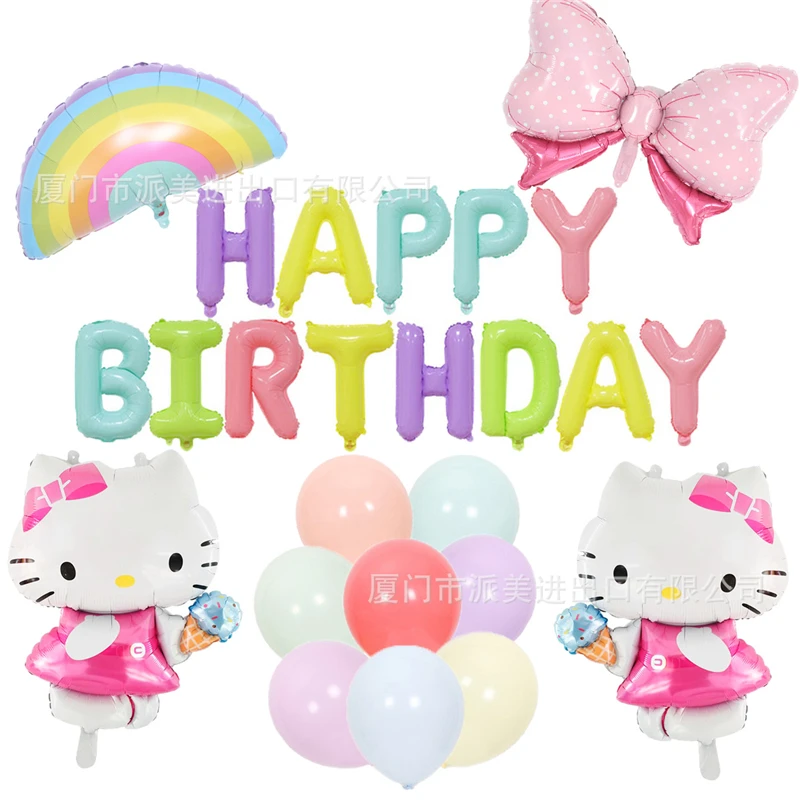 Воздушные шары Sanrio с изображением Хелло Китти, реквизит для вечеринки на день рождения, соломенный баннер, украшение для вечеринки, для мальчиков