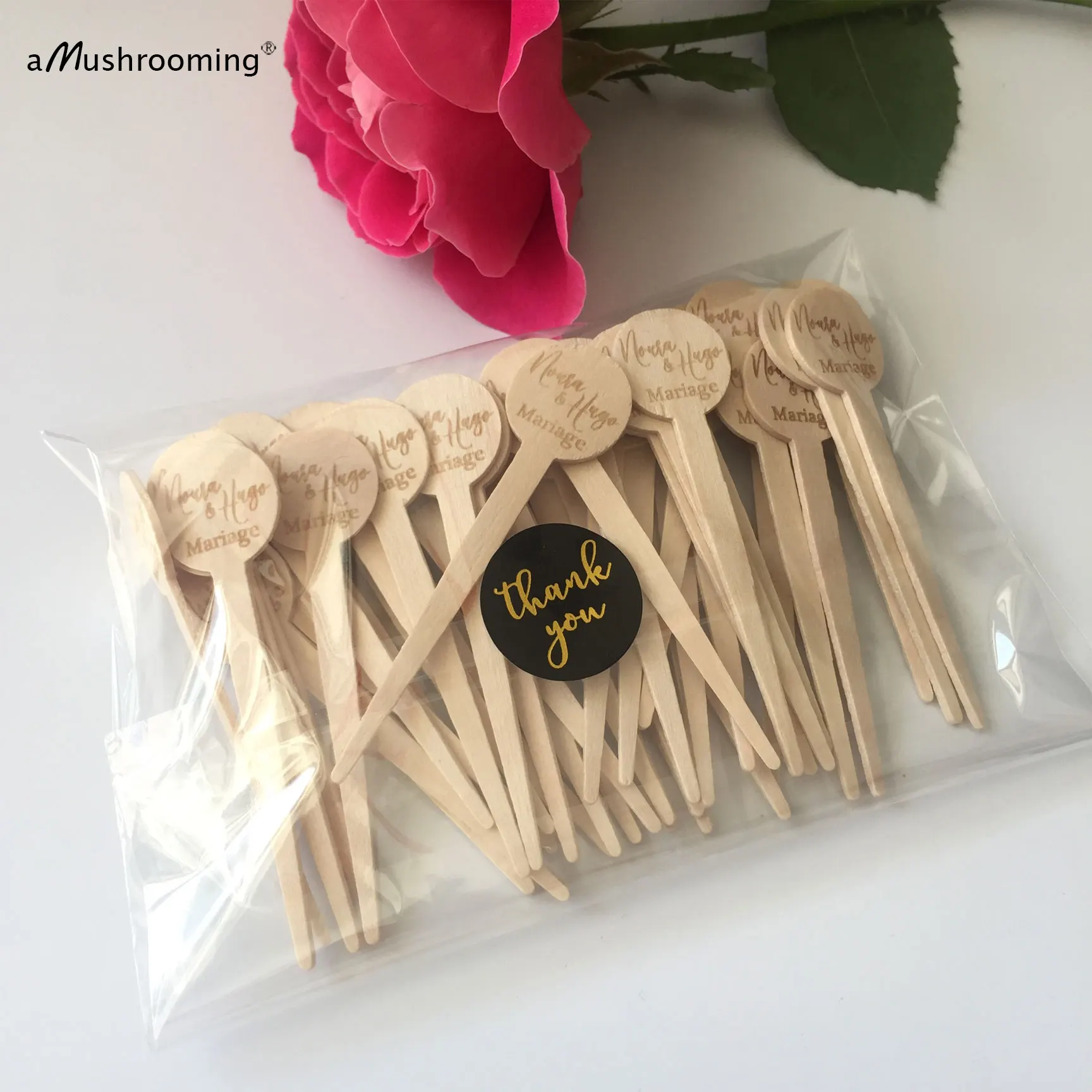 100 шт Свадебные партии выбирает персонализированные имена деревянный Mariage душ буфет стол одноразовые столовые приборы инициалы жениха невесты