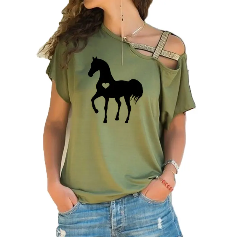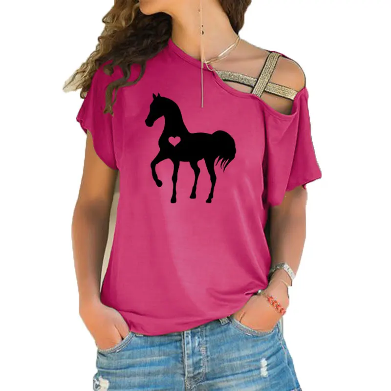 Новинка, летняя футболка в виде сердца и лошади, подарок для любителей конного спорта, подарки, одежда для дня рождения, Необычные бандажные футболки со скошенным крестом