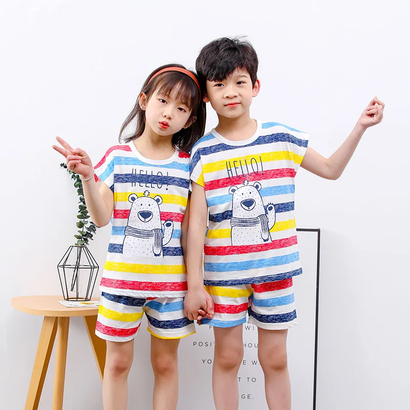 Летний пижамный комплект для мальчиков и девочек, детская одежда с ...