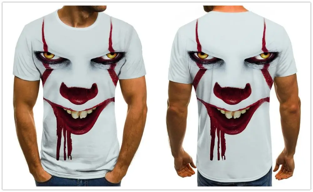 Новинка 2020, крутая Мужская футболка клоуна, топы с забавным лицом...
