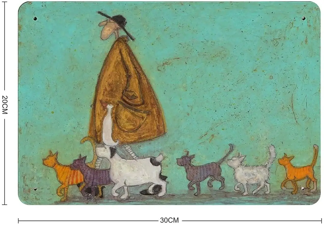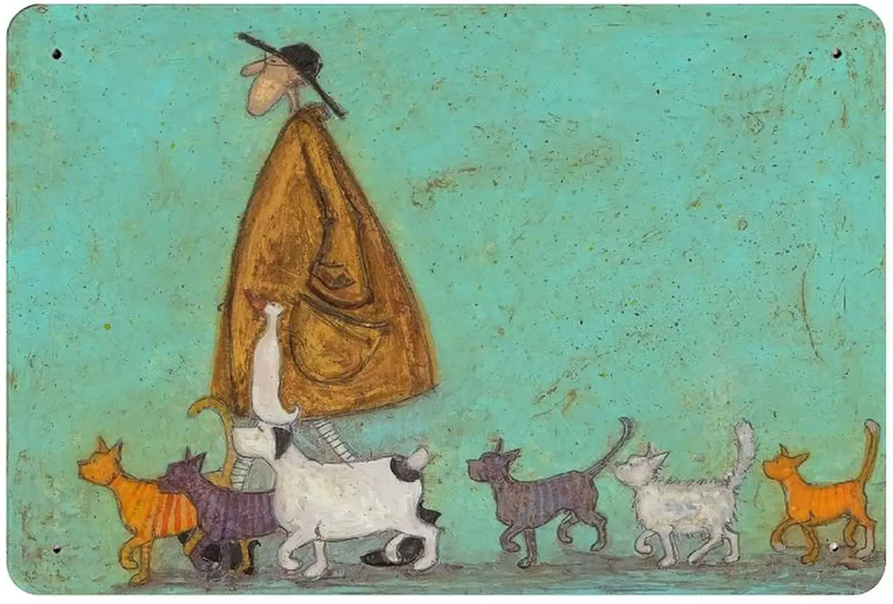 Плакаты Sam Toft с изображением кота, прогулок, жестяная вывеска, винтажный металлический постер для паба, клуба, кафе, бара, дома, художественное украшение, плакат в стиле ретро 20x30 см
