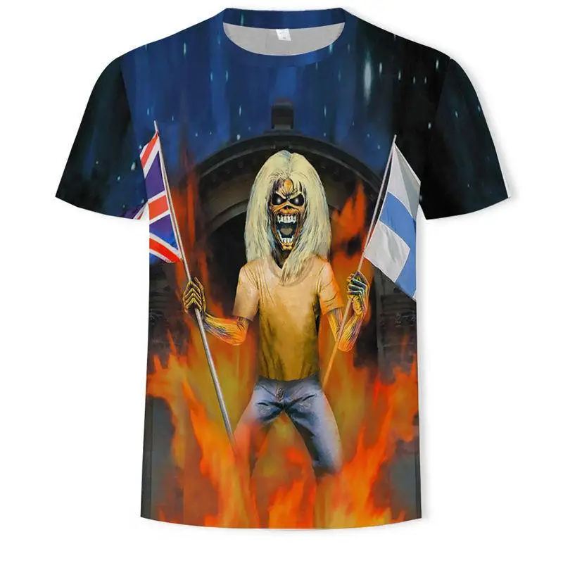 Модная Летняя распродажа металлические Футболка ROCK BAND 3d футболка Летняя футболка для любителей фильмов ужасов 3d Мужская модная футболка уличных танцев хип-хоп стиль, с капюшоном, Топы И Футболки Для Девочек