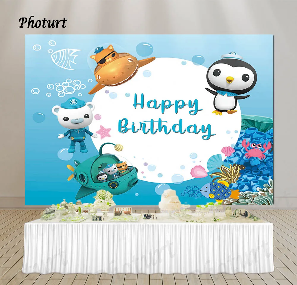 Фотофон Octonauts Детский День Рождения фотография Фон морское дно Спасательная команда баннер полиэстер винил Фотообои