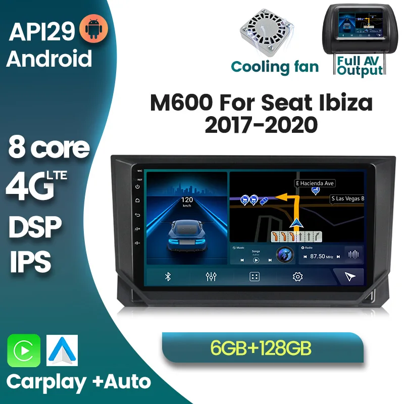 Автомобильный радиоприемник на Android 10,0 6 + 128 для SEAT Ibiza 2017 2018 мультимедийный видеоплеер навигация GPS1280 * 720 IPS экран Встроенный carplay