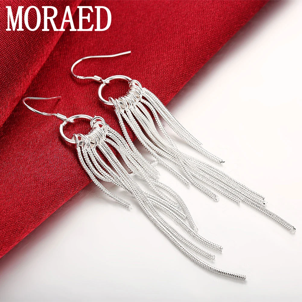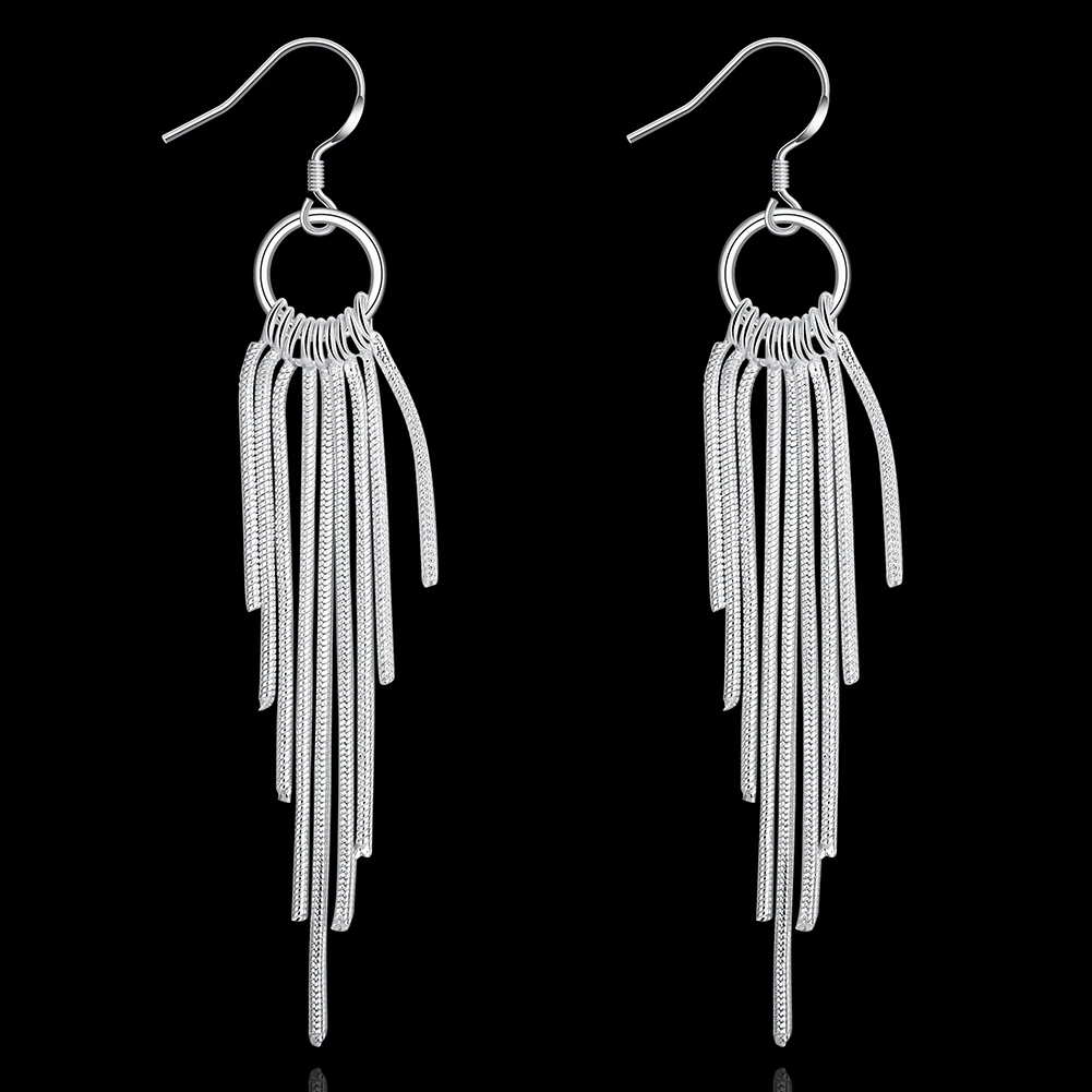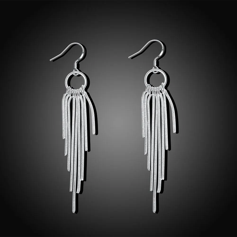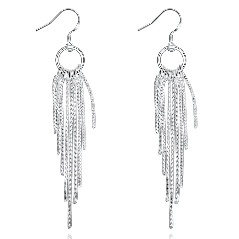 925 серебро, свисающие серьги для женщин, серьги Многоканальная машина с бахромой длинные серьги, модное ювелирное изделие