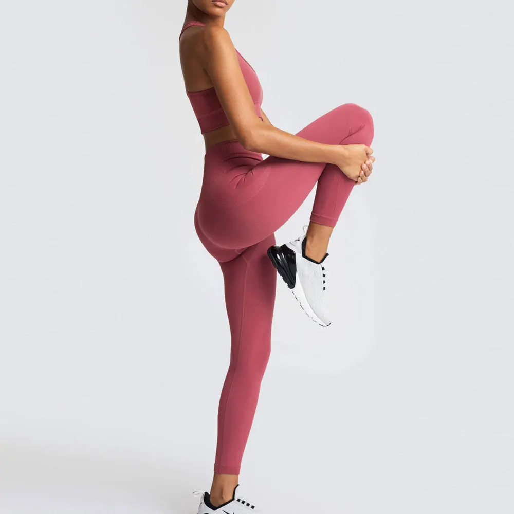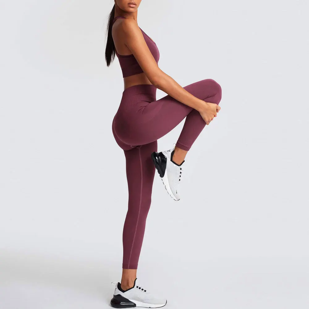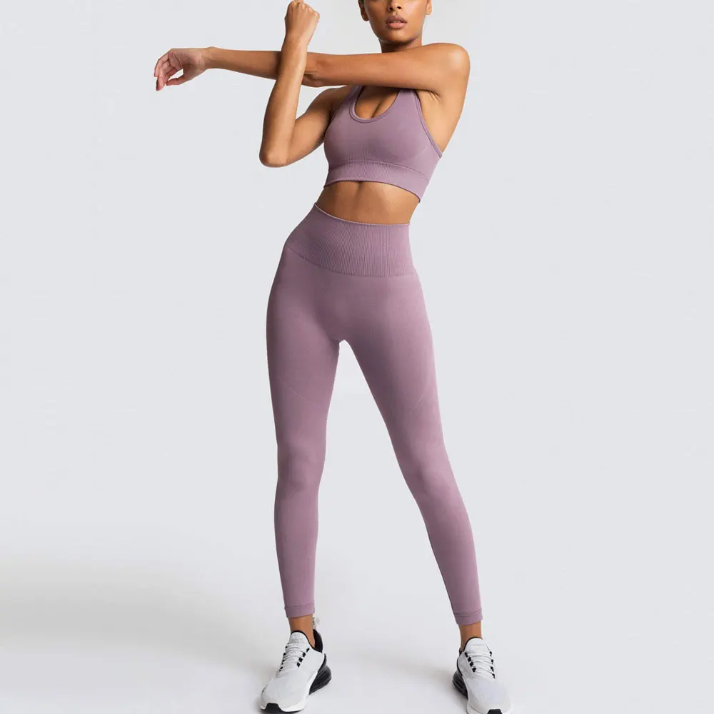Бесшовный Женский комплект для йоги, тренировочная спортивная одежда, одежда для спортзала, одежда для фитнеса, леггинсы с высокой талией, бюстгальтер, спортивный костюм, женская одежда для активного отдыха