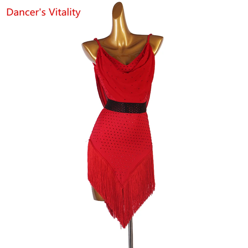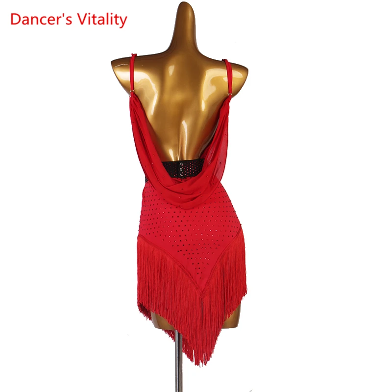 Платье женское для латиноамериканских танцев, с бахромой и камнями