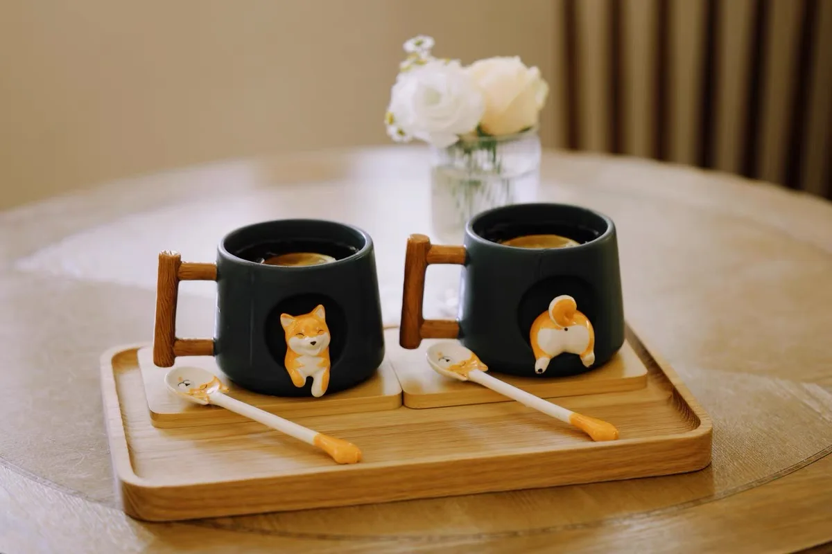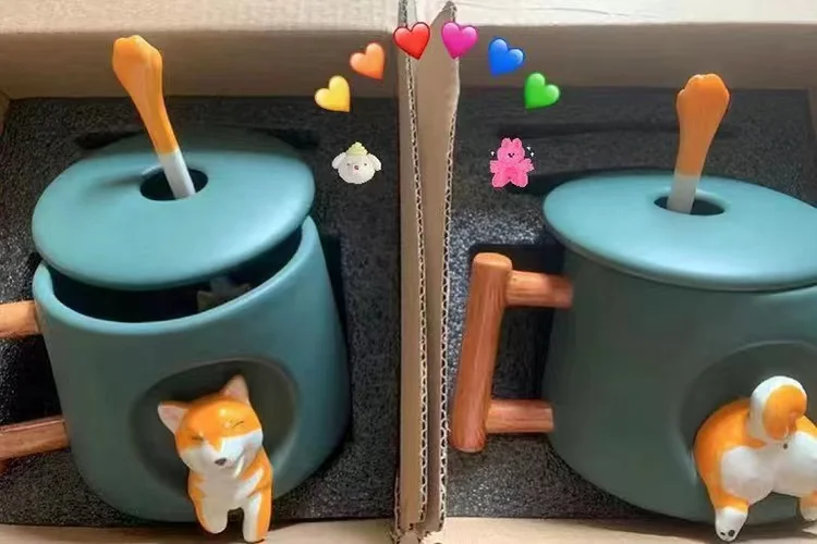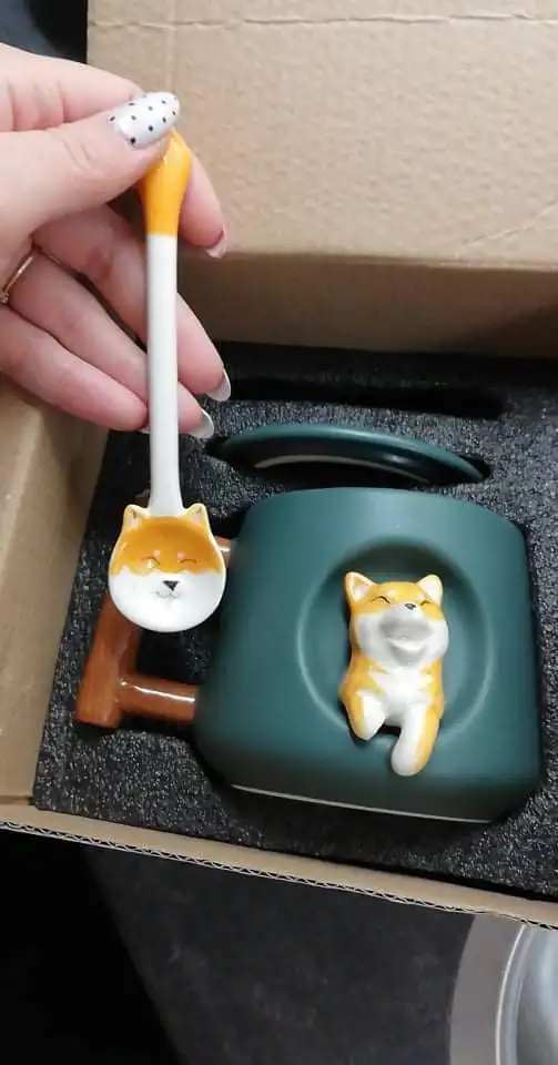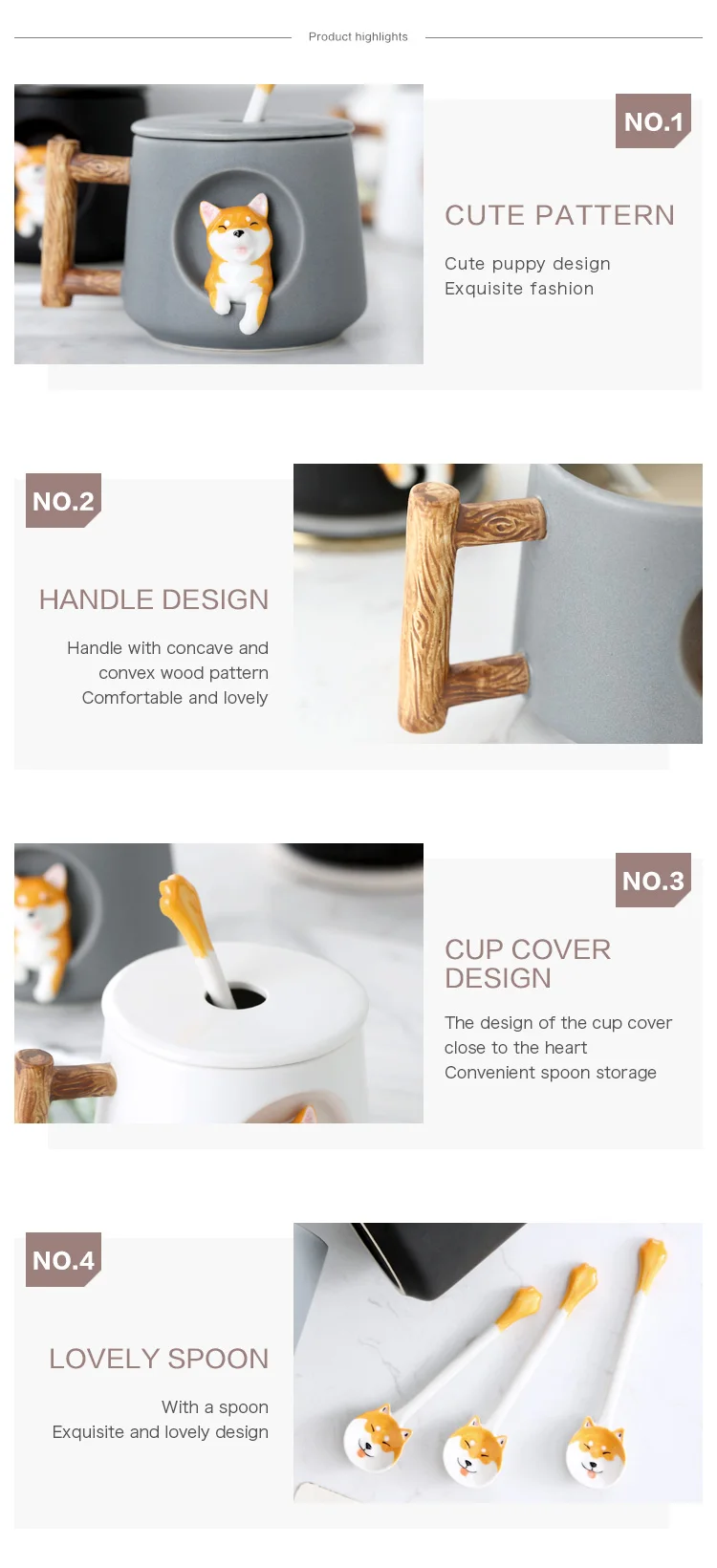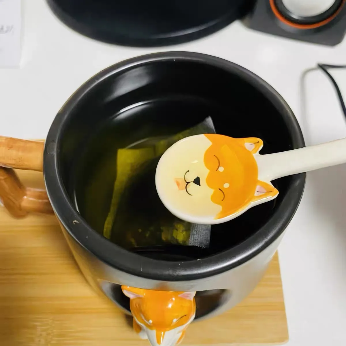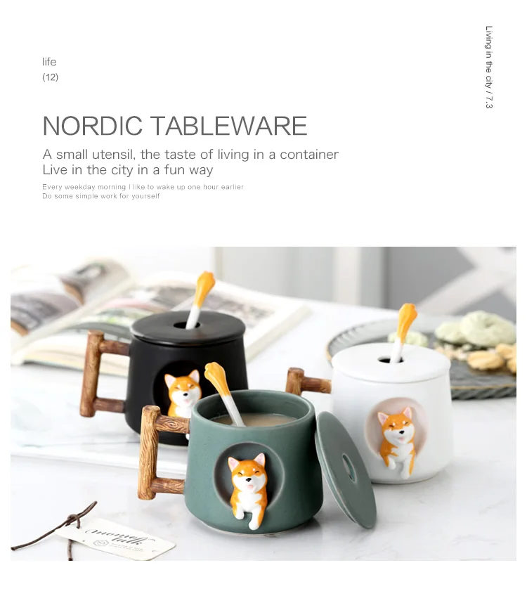 Мультяшная керамическая кружка, милая 3D Шиба-ину, рисунок с крышкой, ложкой, любимый подарок для девушек, для молочного чая, для пары