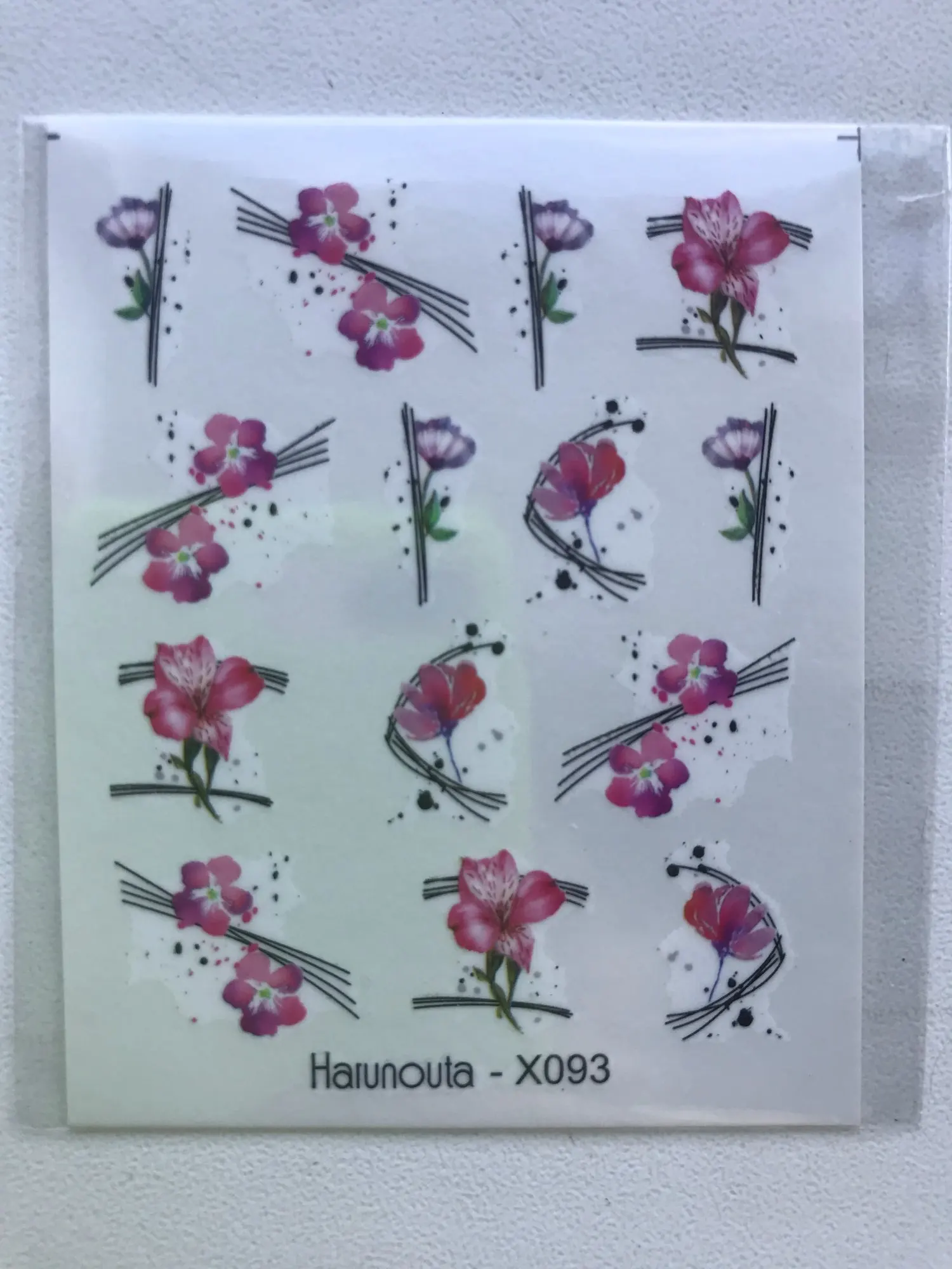 Наклейки для ногтей Harunouta, с черными линиями, цветами, листьями, мраморным узором, летнее украшение для ногтей