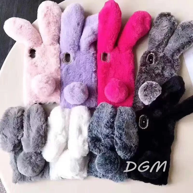 Чехол с объемным изображением кролика, пушистый теплый меховой чехо...