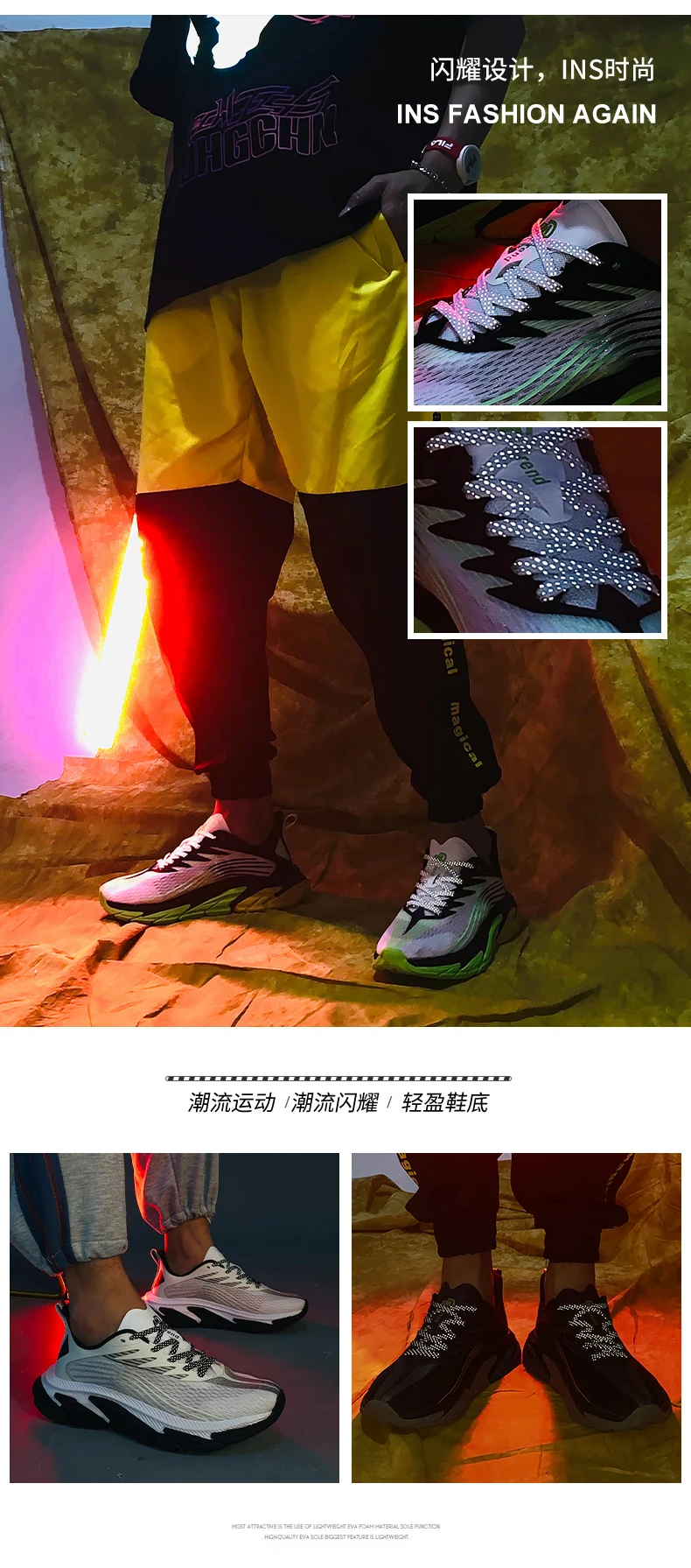 Модная повседневная обувь с высоким берцем; Мужская светящаяся обув...